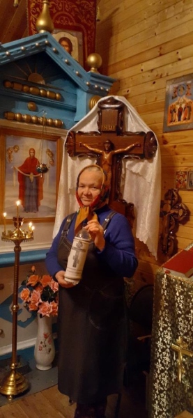 А для тех обслуживаемых, кто по состоянию здоровья не выходит из дома, принесли освященную воду на дом.